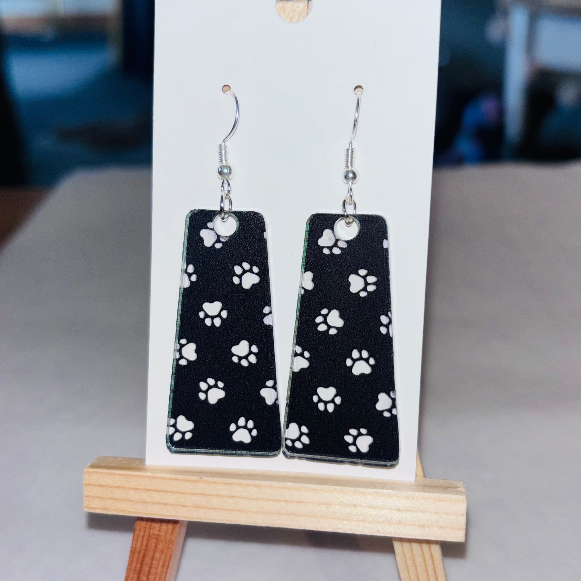 *Please Note: The Red Acrylic has a Red background and White pawprints, while the Black Acrylic has a Black background and see through pawprints (this can be best seen in the teardrop dangle photos).